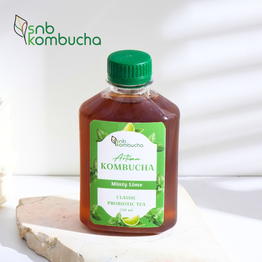 SNB Kombucha merupakan minuman fermentasi teh yang mengandung probiotik. Selain itu, minuman ini membantu menjaga kesehatan pencernaan, meningkatkan daya tahan tubuh, membantu menjaga fokus, serta membantu menstabilkan kadar gula darah dan tekanan darah. Konsumsi kombucha secara rutin juga dapat membantu menjaga kesehatan kulit.